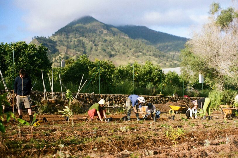 Stižem na La Palmu i upoznajem pet volonterki s kojima ću devet mjeseci dijeliti prostor, hranu, radno i slobodno vrijeme, sretne i manje sretne trenutke. Dolaze iz Hrvatske, Italije, Maroka, Rusije i Španjolske (Jana, Arianna, Oumayma, Christina i Lidia). Upoznajemo se s imanjem kojim posljednjih sedam godina upravljaju entuzijastični, predani i brižni Numa i Sole. Imanje je podijeljeno u zone koje nose lokalna urođenička imena: Abora, Awara, Tajogaite, Vesta, Tigotán… Numa i Sole postupno, uz pomoć volontera, sve više transformiraju imanje u tzv. SAF-ove (syntropic agroforestry system) u kojima primjenjuju principe sintropijskog agrošumarstva koje je razvio švicarski poljoprivrednik Ernst Götsch 1980-ih.