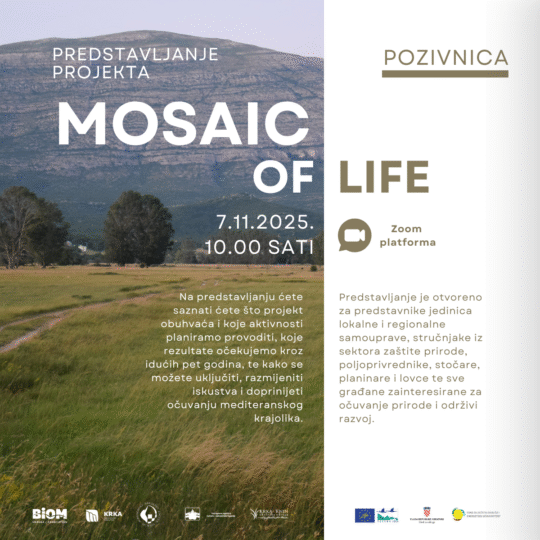 Nakon uspješnog prvog javnog predstavljanja u Puljanima, s radošću vas pozivamo da nam se pridružite na online predstavljanju projekta „Mosaic of LIFE“, posvećenog očuvanju i obnovi jedinstvenog mozaičnog mediteranskog krajolika.